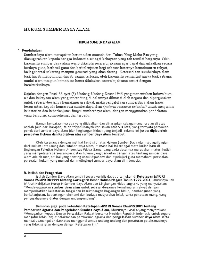 3 Hak dan Kewajiban Penggunaan Sumber Daya Alam. Perjanjian-perjanjian awal ini penting untuk melacak sejauh mana aturan yang beragam itu dimasukkan. Sumber daya alam SDA bisa berupa barang dan jasa.
