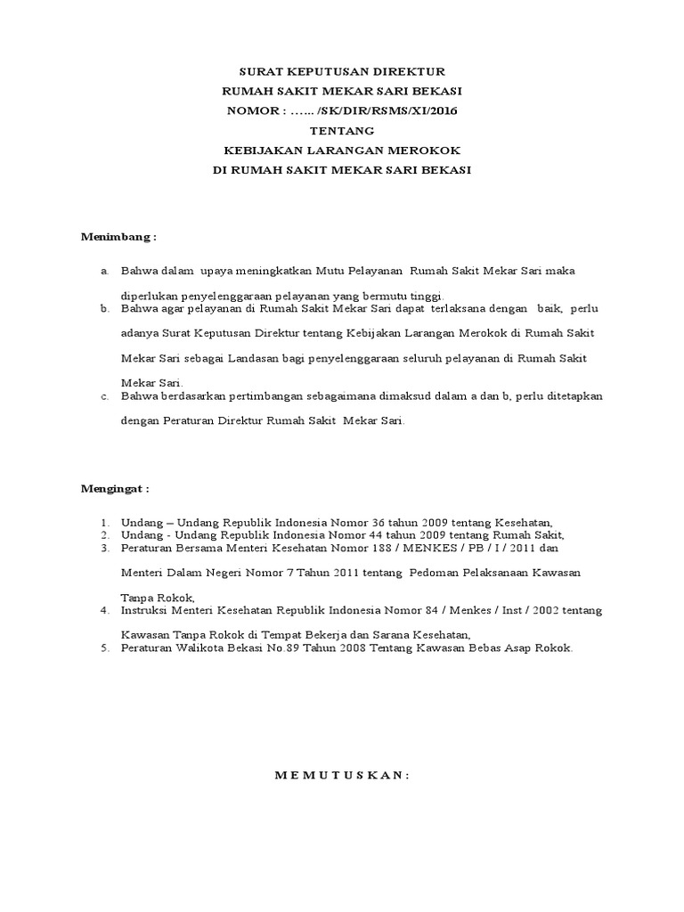 Sk Direktur Larangan Merokok Pdf
